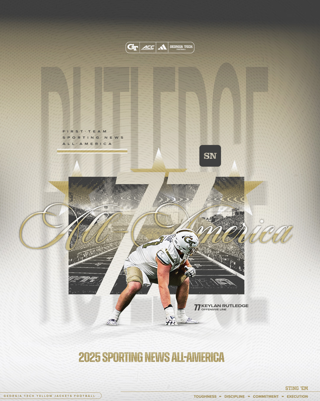 A first-team all-Atlantic Coast Conference selection, Rutledge was also the recipient of the ACC’s Brian Piccolo Award in 2025. One of the conference’s most prestigious individual recognitions, the Piccolo Award is presented annually to the ACC’s most courageous player. Rutledge overcame very serious injuries sustained in an automobile accident in December 2023 to become one of college football’s top offensive linemen over the last two seasons.