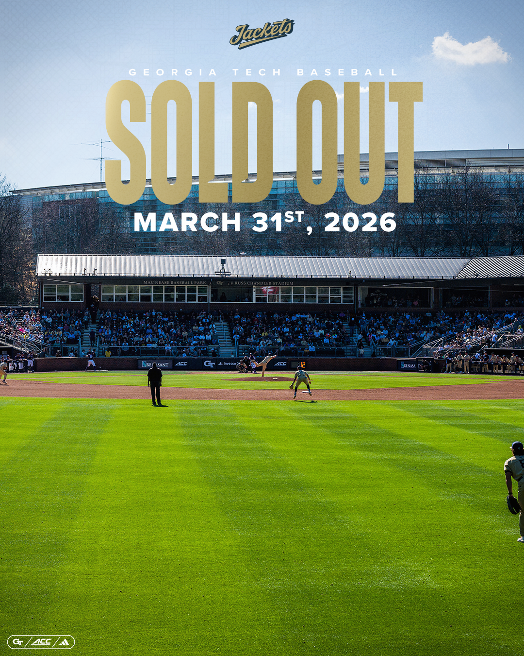 THE FLATS – Georgia Tech baseball has announced that Tuesday night’s game vs. No. 18 Auburn (7 p.m. – March 31) is officially sold out. There are an additional 100 standing room tickets available for purchase ($30 each) HERE.