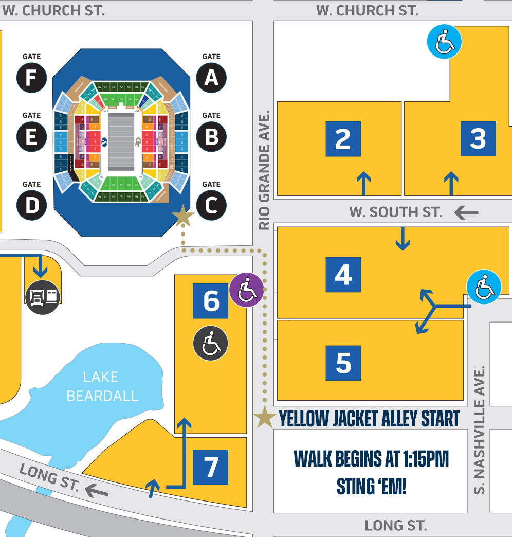 Yellow Jacket Alley will begin at 1:15pm on Saturday, Dec. 27th. See map for more details: