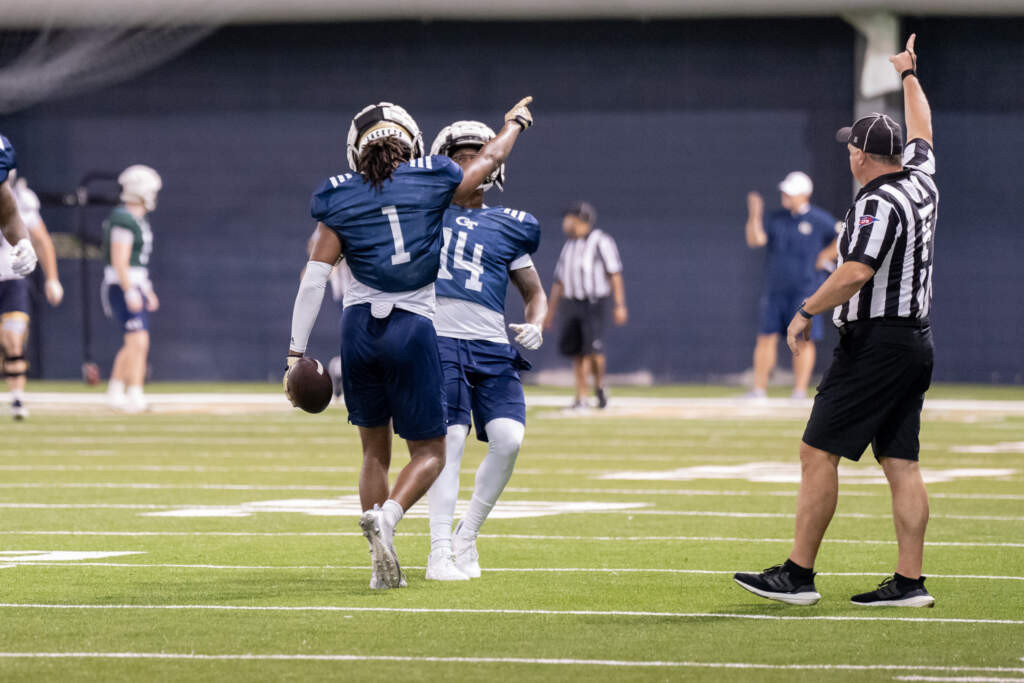 Georgia Tech RB/Run Game Coordinator Norval McKenzie and RBs Jamal Haynes and Dontae Smith talk to media after practice