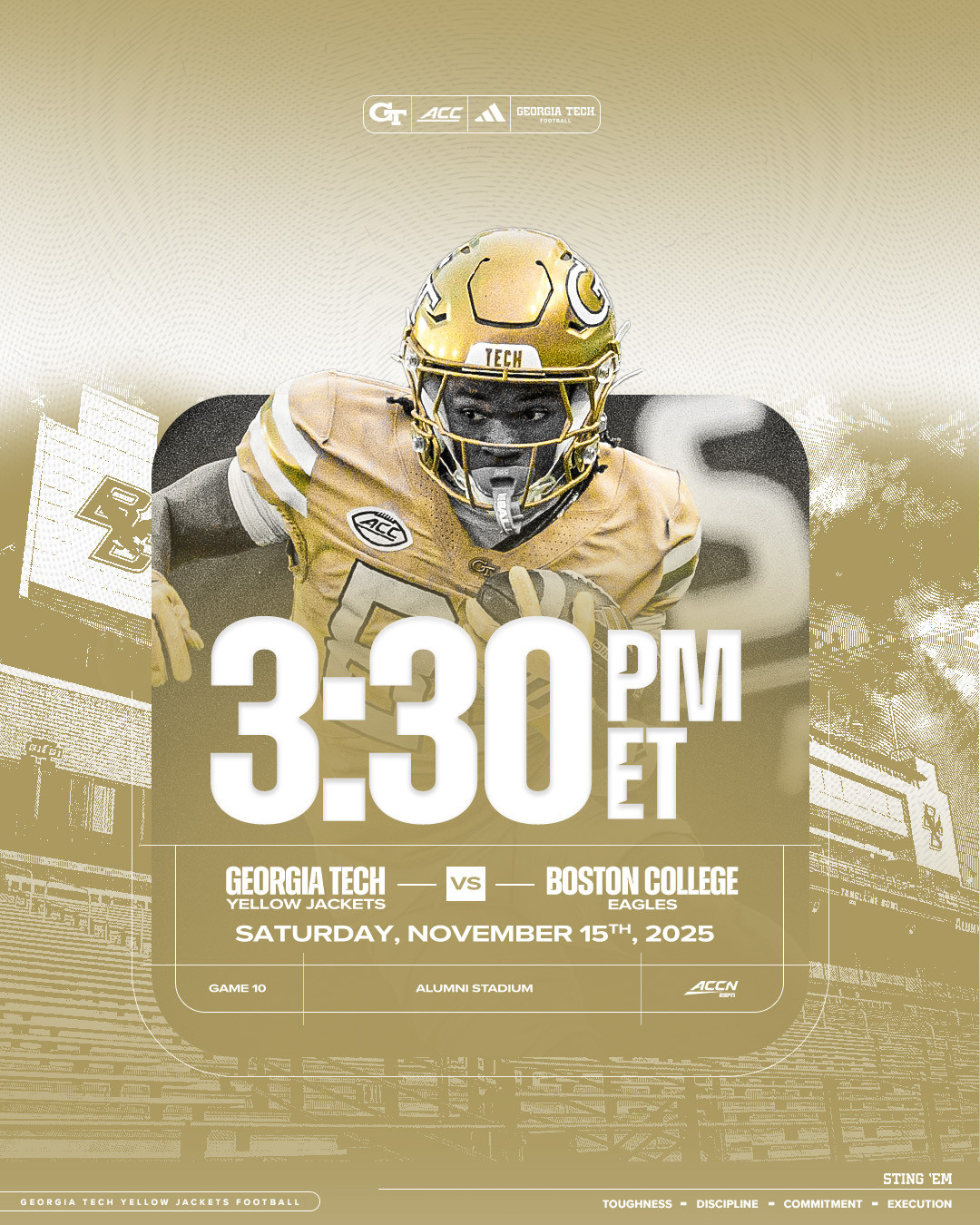 For the latest information on the Georgia Tech Yellow Jackets, follow us on X, Facebook, Instagram and at www.ramblinwreck.com.