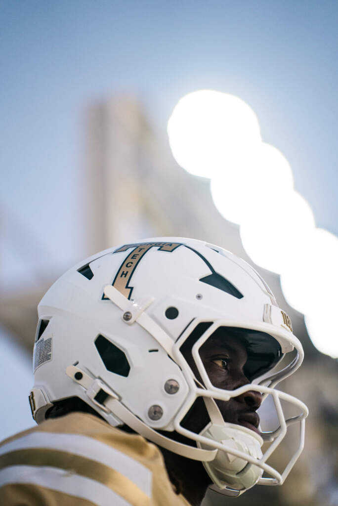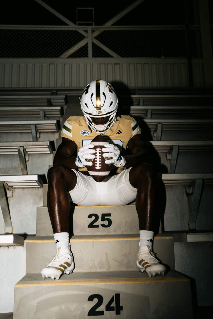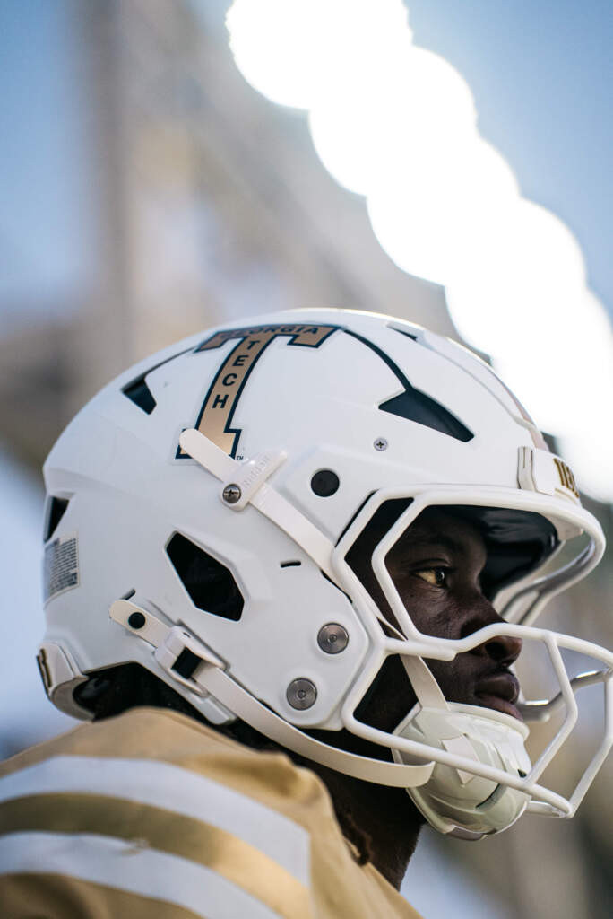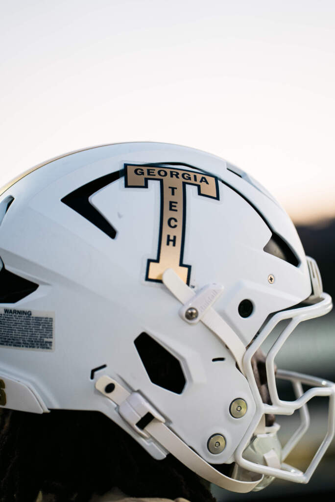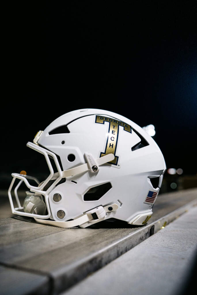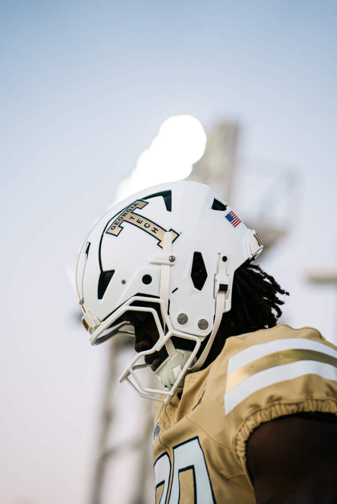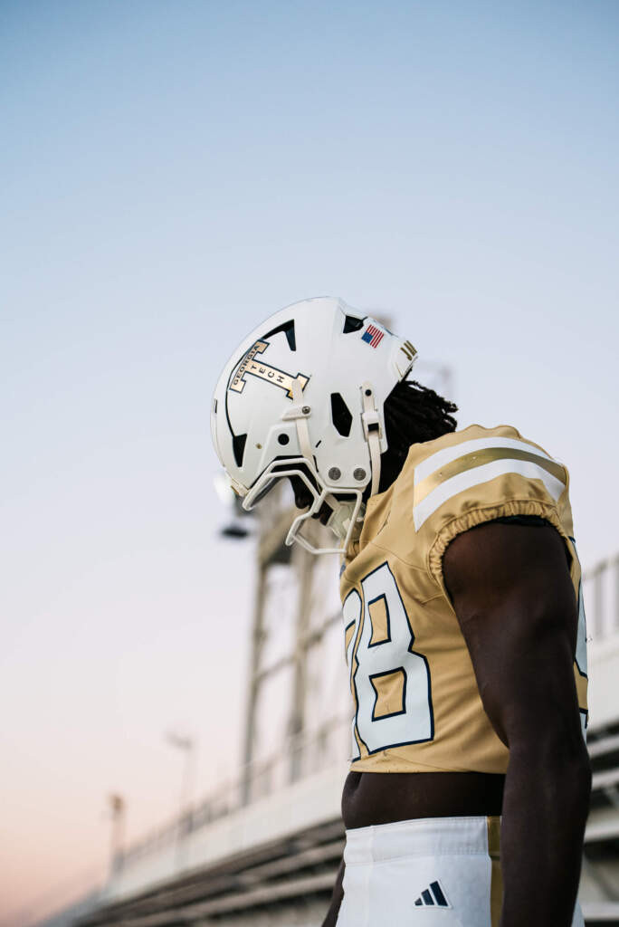 Amontrae Bradford unveils Georgia Tech's homecoming threads featuring the retro Block T logo on a white helmet