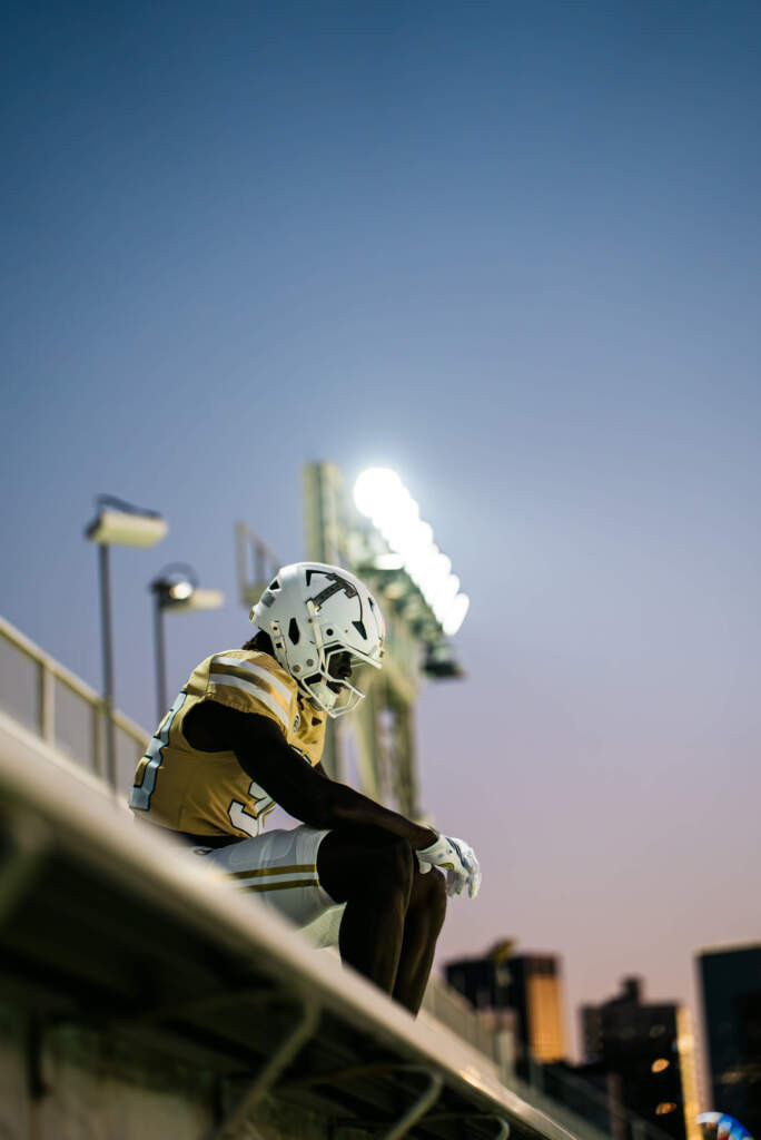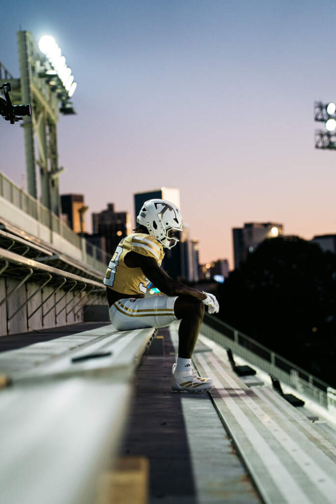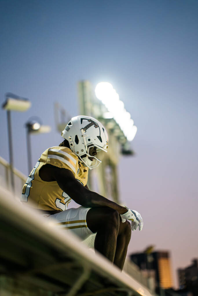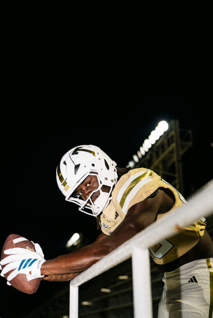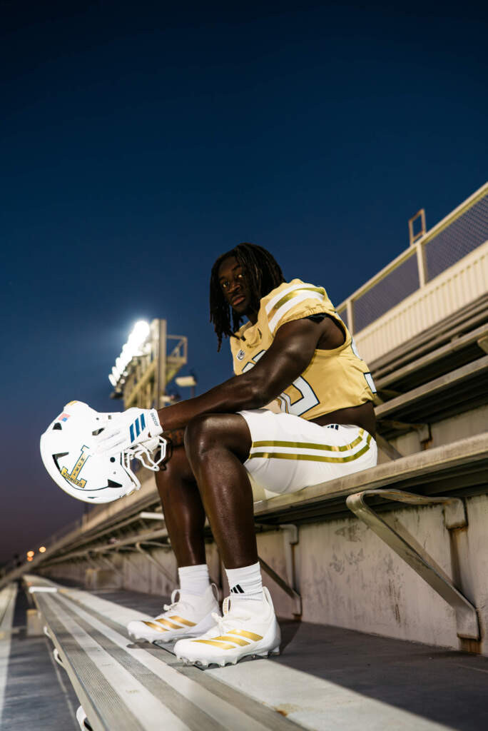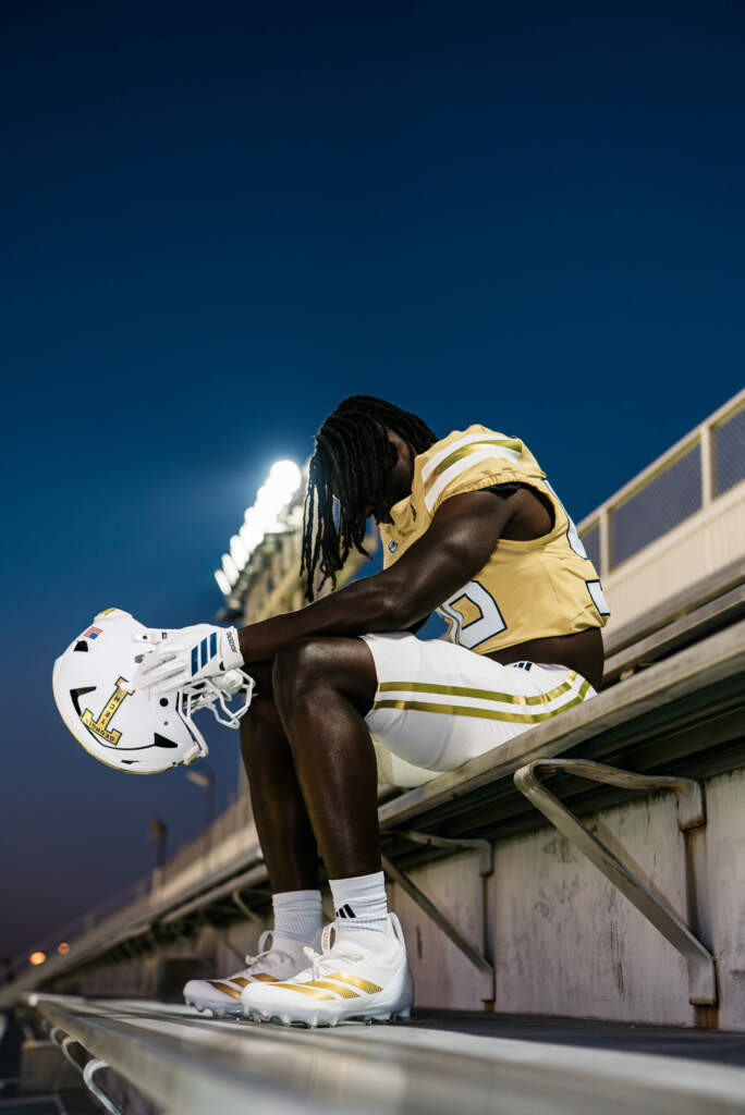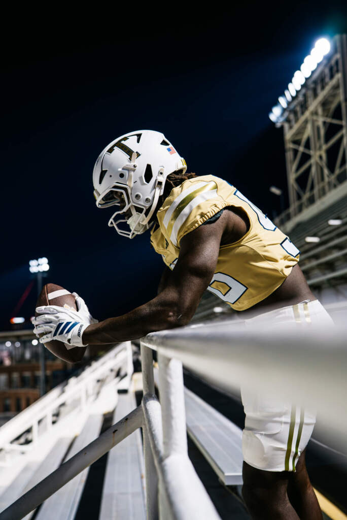 Amontrae Bradford unveils Georgia Tech's homecoming threads featuring the retro Block T logo on a white helmet