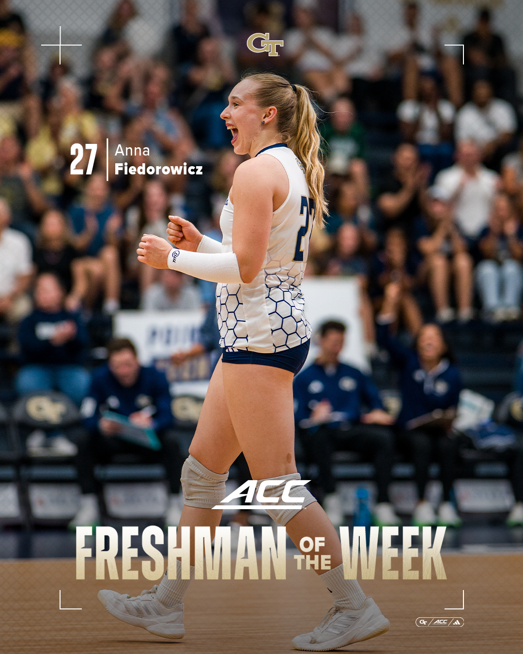 THE FLATS – Georgia Tech volleyball collected its third ACC weekly honor of the season as outside hitter Anna Fiedorowicz was announced as the ACC Freshman of the Week by the conference on Monday afternoon. Fiedorowicz received the honor after leading the Jackets to back-to-back sweeps of Clemson last week.