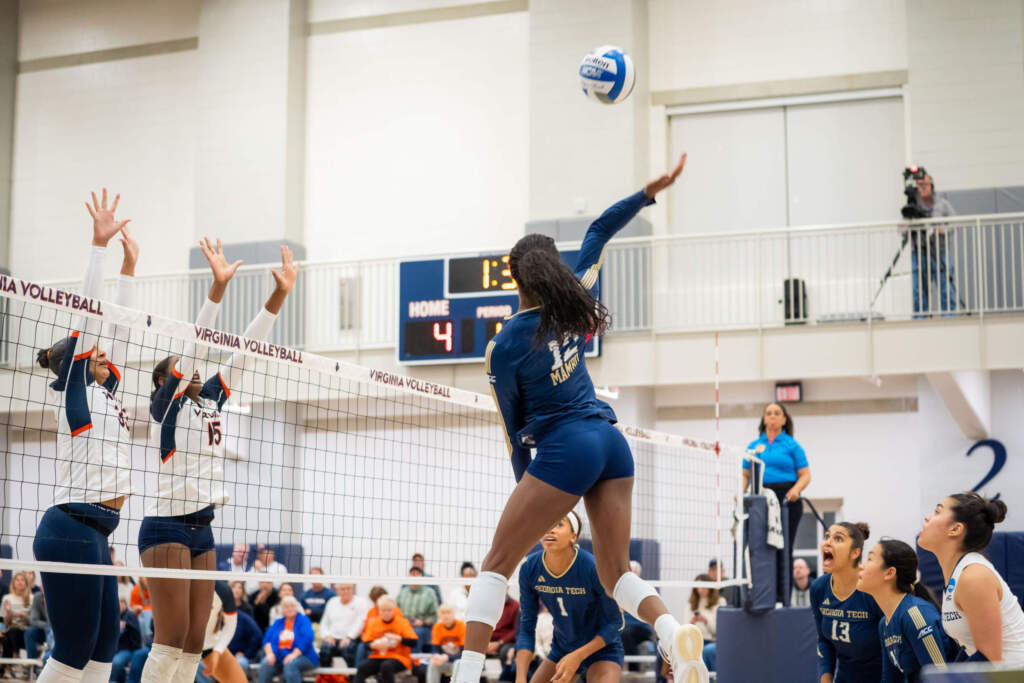 - The Jackets struggled on offense in set three as well as had a hard time managing the Cavaliers’ .429 attack percentage. Virginia took an early lead over Tech but pushed the set three win out of reach with a seven-point run to make the set 21-9. Despite having more attack attempts than Virginia (27-21), five Cavalier blocks and seven Yellow Jacket attack errors ultimately gave set three to UVA. Pierce, Mambu, Despaigne, and Fiedorowicz all recorded two kills apiece. Soares tallied another seven assists while Velez had another two digs and Garibaldi saw yet another solo block.