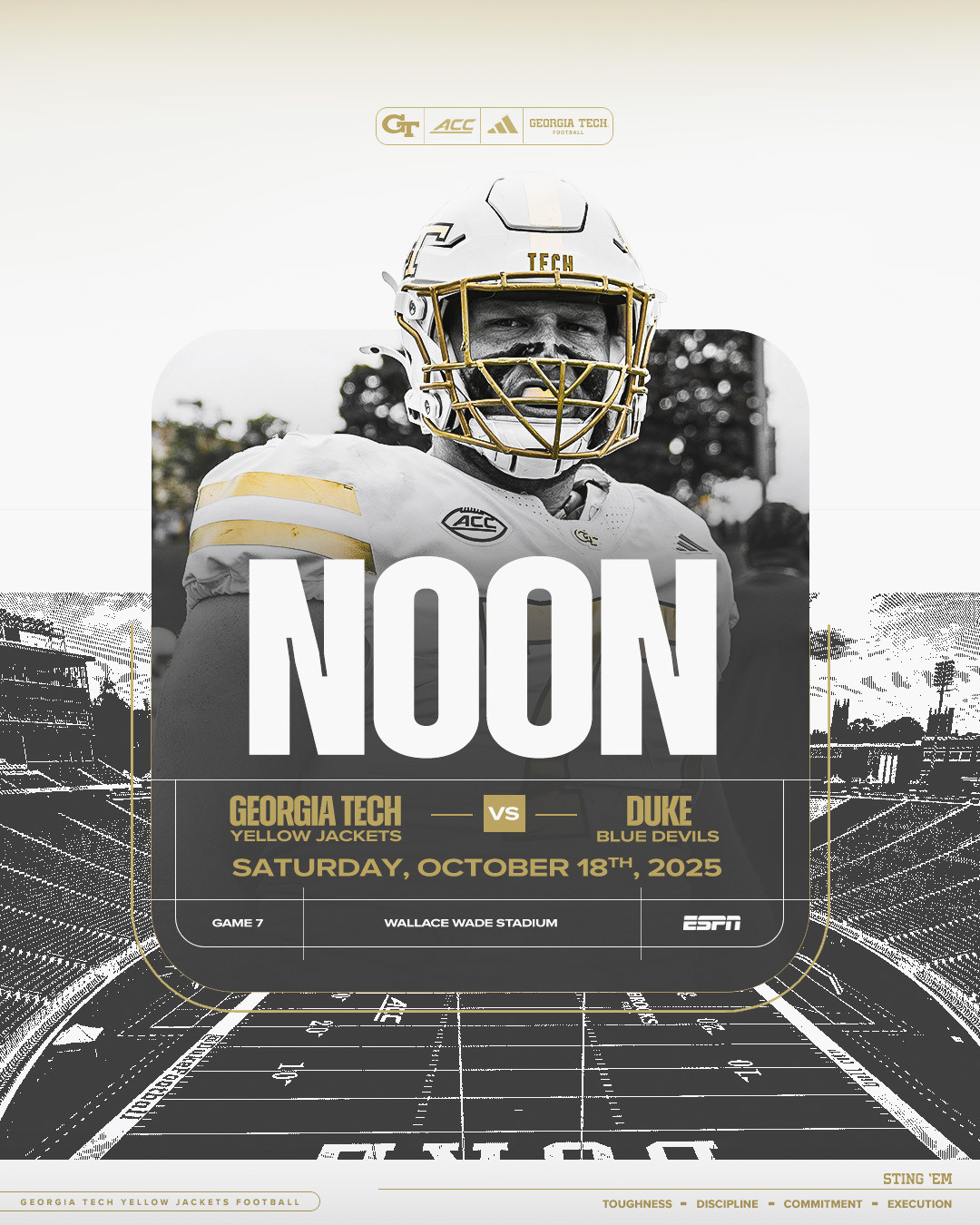 For the latest information on the Georgia Tech Yellow Jackets, follow us on X, Facebook, Instagram and at www.ramblinwreck.com.