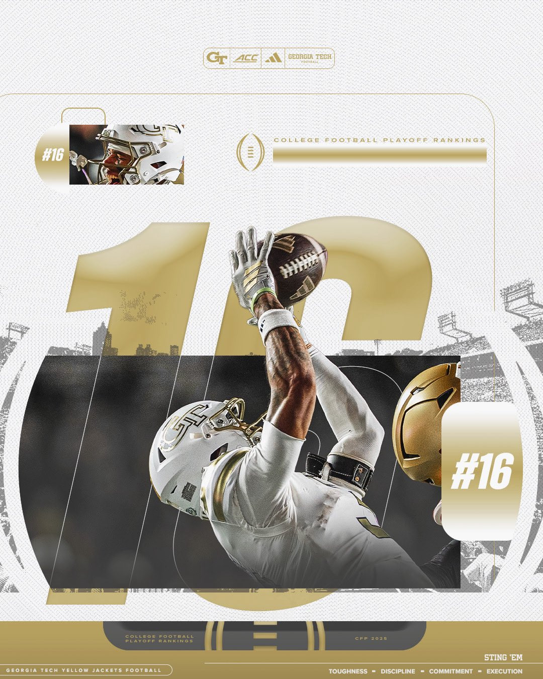 THE FLATS – Georgia Tech remained at No. 16 in this week’s College Football Playoff rankings, which were announced Tuesday night.