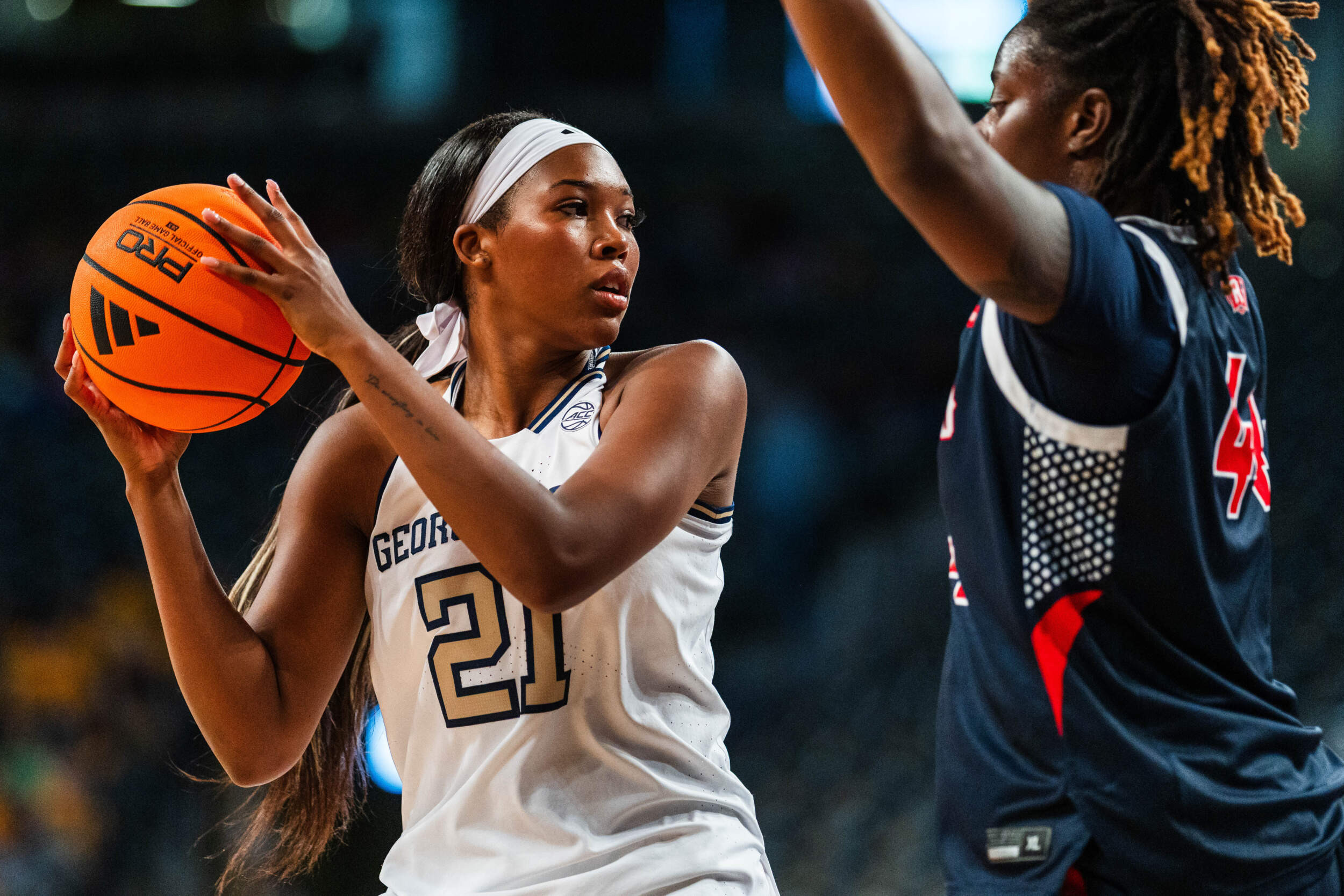 Three Yellow Jackets found themselves in double-digit scoring figures Thursday as Talayah Walker led the charge with 16 (6-for-9 from the floor), joined by Catherine Alben (14) and D’Asia Thomas-Harris (10). Both entered the game off the bench. Brianna Turnage led the defensive rim presence for Tech, tallying 11 boards and tying her career high. Erica Moon set a new career-best with a team-high six assists.