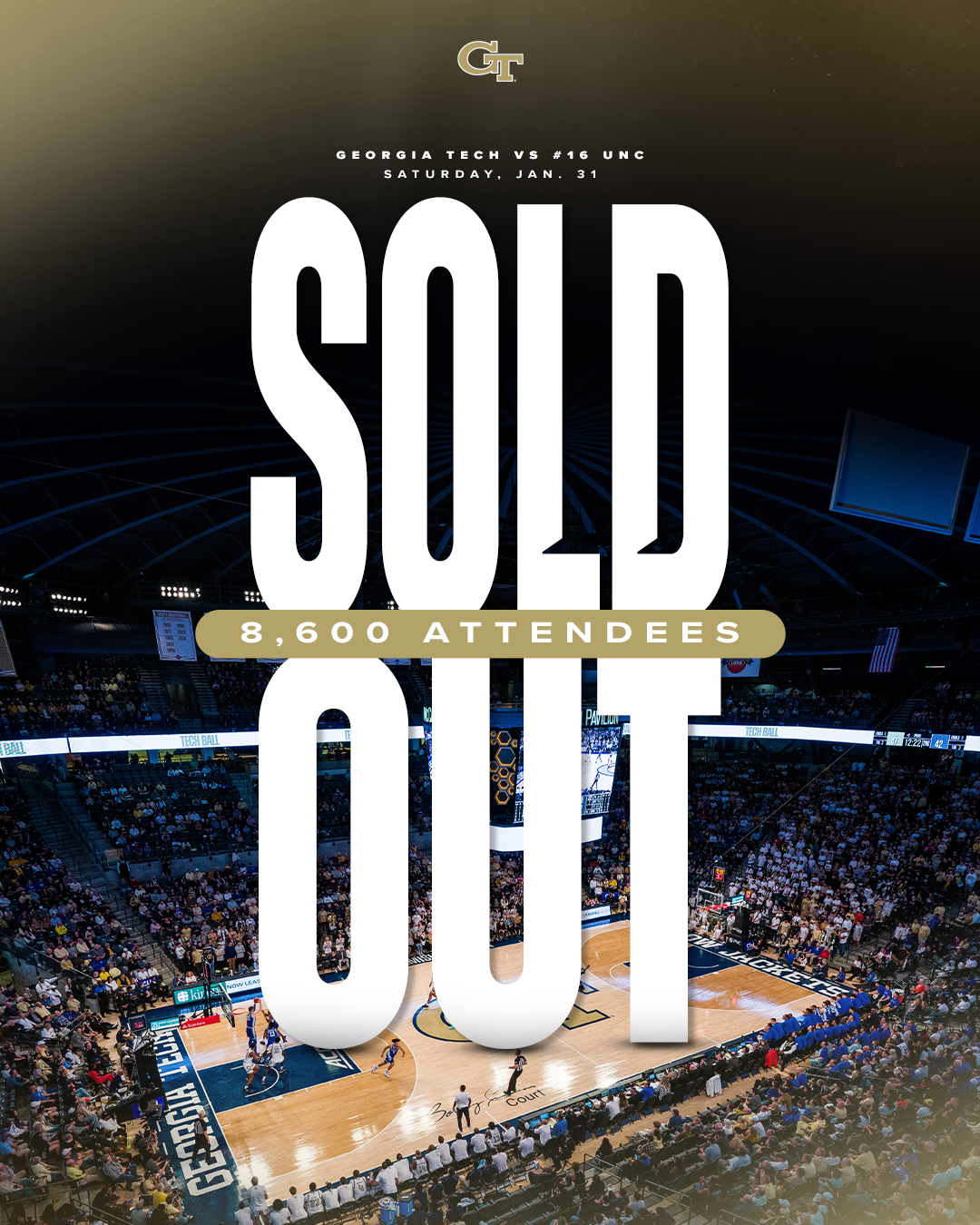 THE FLATS – Georgia Tech’s Jan. 31 men’s basketball game against 16th-ranked North Carolina has sold out. Tickets for the game are only available through SeatGeek, the official fan-to-fan marketplace for Georgia Tech athletics.