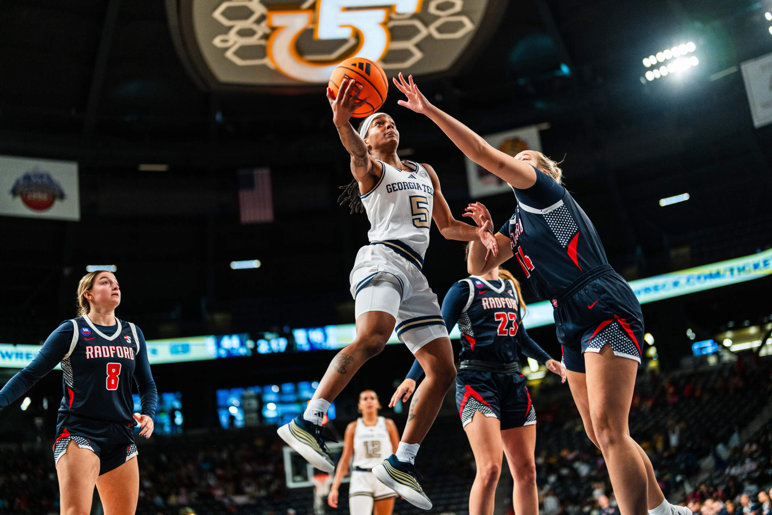 The Yellow Jackets (1-0, 0-0 ACC) look to add to an impressive season-opening showing Thursday when they defeated Radford, 82-36, for the program’s seventh-straight 1-0 start. Tech out-rebounded the Highlanders 51-23 and tallied 41 bench points. First-year head coach Karen Blair’s squad outscored Radford 69-26 in the final three frame and did not allow a point in the second quarter.