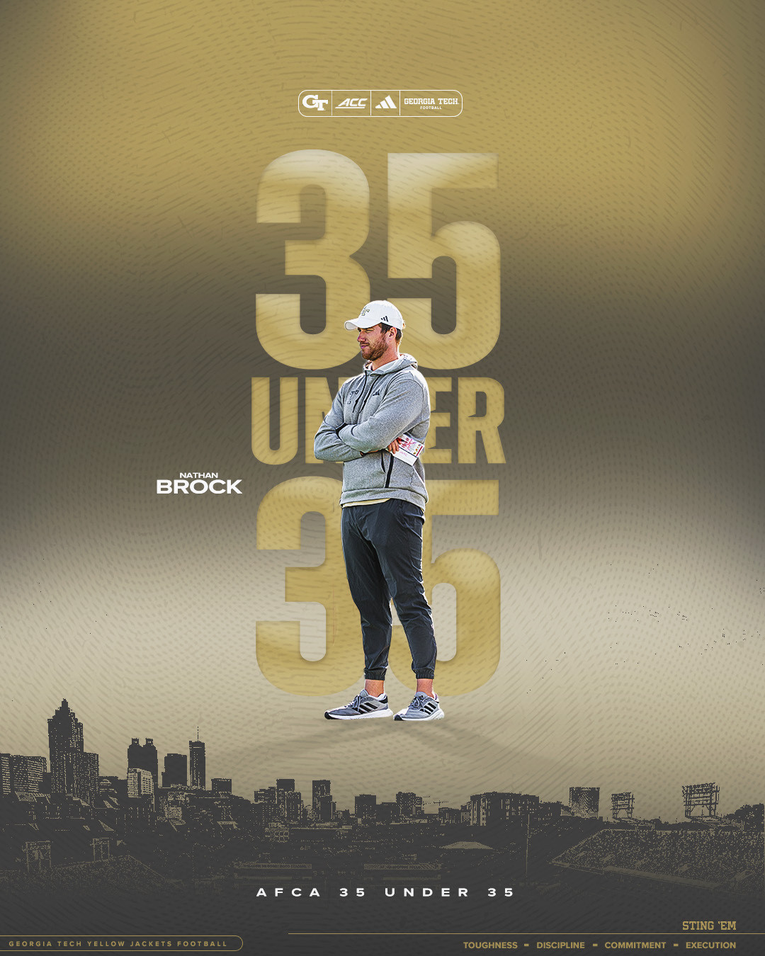 THE FLATS – Georgia Tech tight ends coach Nathan Brock has been selected to participate in the 2026 American Football Coaches Association (AFCA) 35 Under 35 Coaches Leadership Institute, the AFCA announced on Monday.