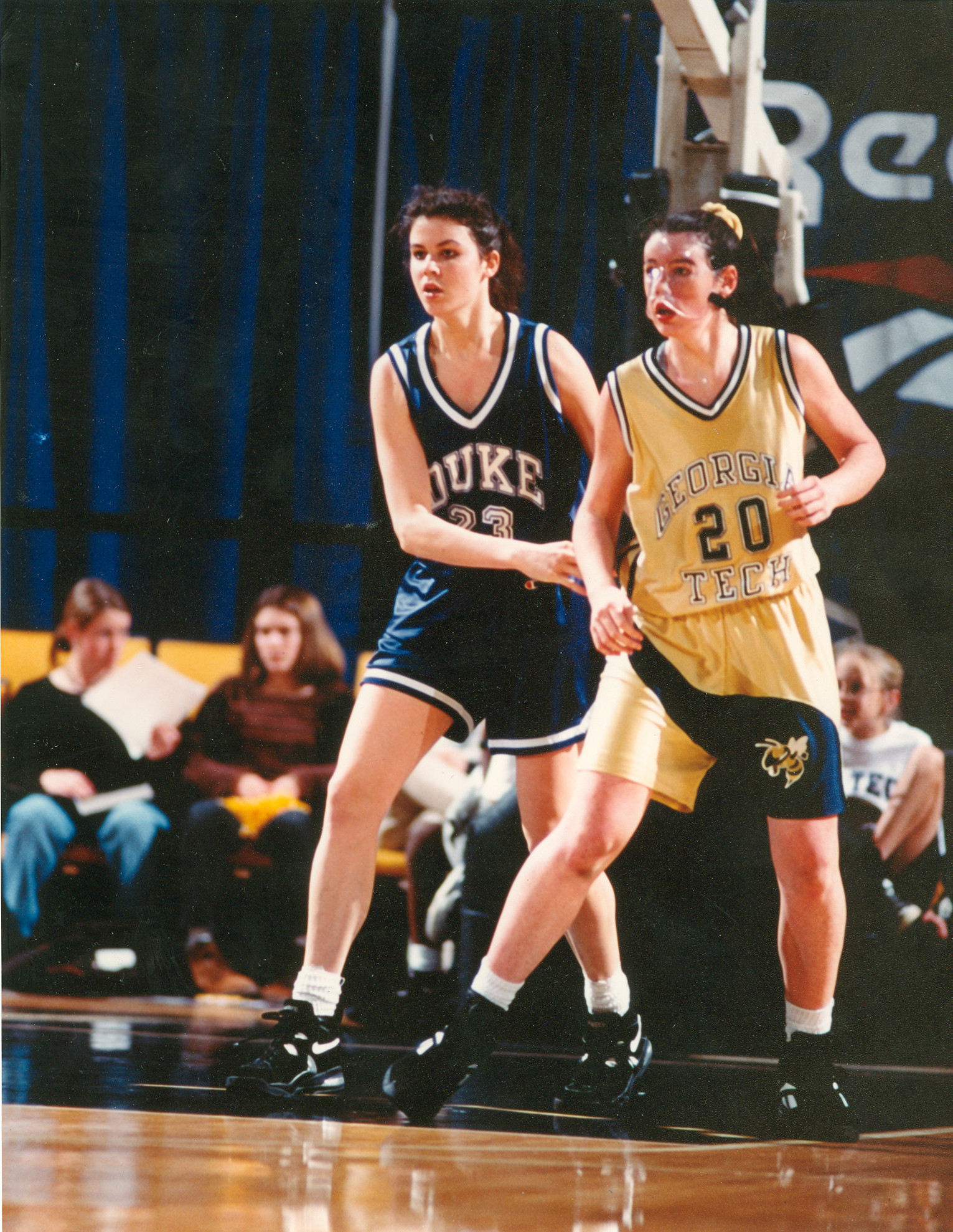 “Lara was coaching me my freshman year (she was an assistant coach for two seasons following her playing career at Tech) and ‘NBA Inside Stuff’ came that day to see who Mom and Dad would be cheering for. It was also the game when I was shooting free throws while the Duke band chanted ‘Ca-rey’s bet-ter [clap, clap, clap-clap-clap],’” she remembered. Joannah made both free throws, then shot the band members a scowl.