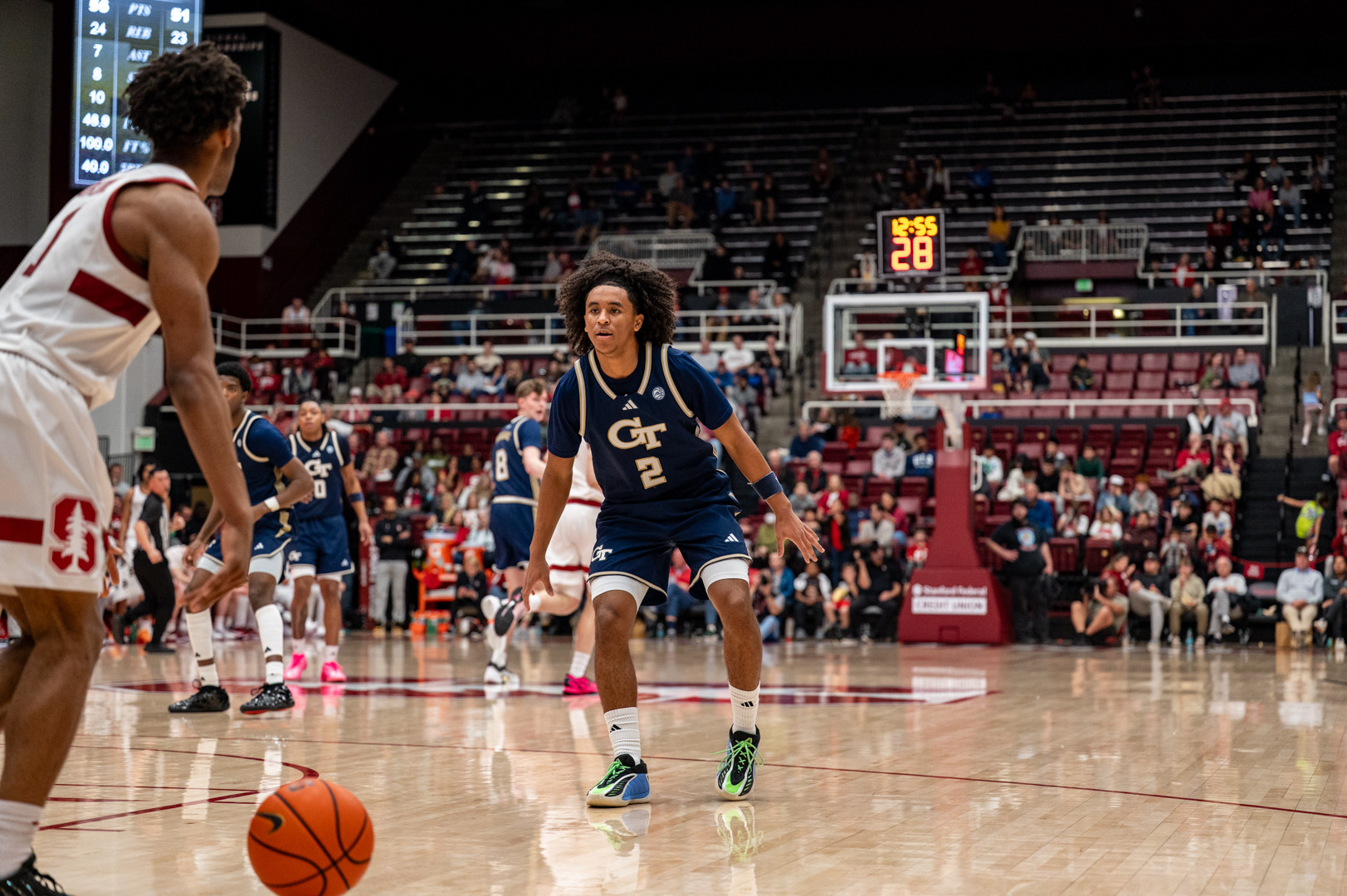 Fleming and Jaeden Mustaf combined for 16 points in the first half as the Yellow Jackets and Cardinal worked through seven lead changes in the opening 20 minutes. Tech shot 55.2 percent (16-29) in the first half and saw offensive production from seven different Jackets despite Stanford opening a double-digit lead off a triple from Ebuka Okorie. A 9-0 Tech run late in the half cut the score to 38-36. Stanford led 43-39 at halftime.