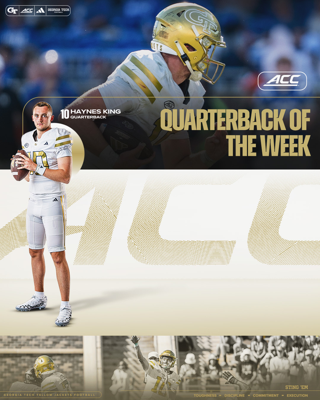 THE FLATS – Georgia Tech’s Haynes King (Longview, Texas/Longview H.S.) and Jy Gilmore (Citra, Fla./North Marion H.S.) have been named the Atlantic Coast Conference’s Quarterback and Defensive Back of the Week, respectively, for their performances in the Yellow Jackets’ 27-18 win over Duke.
