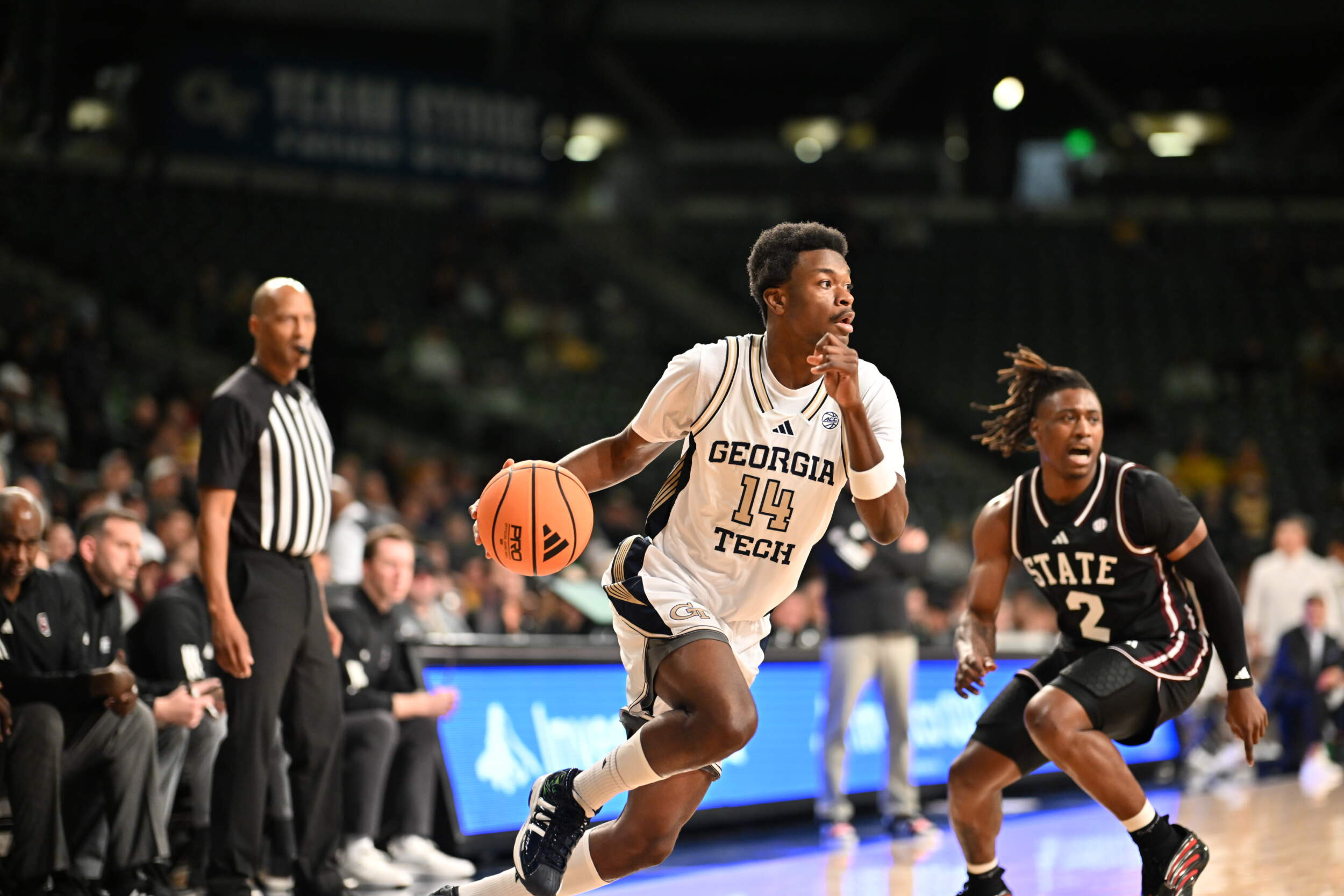 THE FLATS – Kowacie Reeves Jr. scored a career-high 23 points, but Georgia Tech men’s basketball was cold from the field otherwise in an 85-73 loss to Mississippi State in the ACC/SEC Challenge on Wednesday night at McCamish Pavilion.