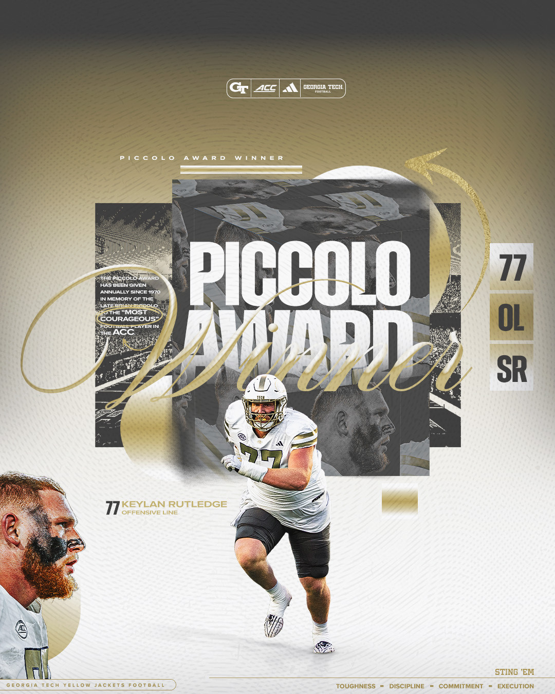 Rutledge is only the fifth Yellow Jacket to ever win the Piccolo Award, joining LB Al Richardson (1979), RB Jerry Mays (1988), RB Ed Wilder (2000) and RB Robert Godhigh (2013).