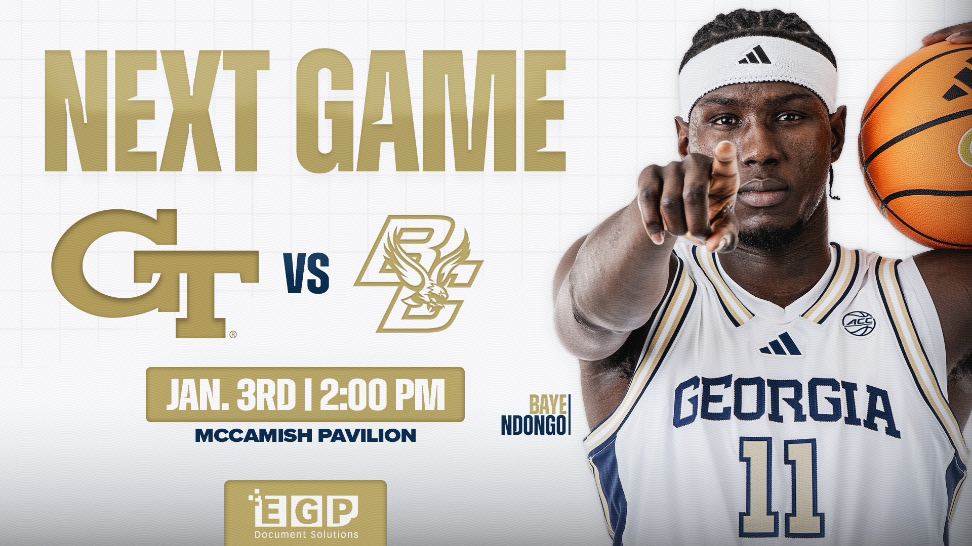 Georgia Tech men’s basketball seeks its first Atlantic Coast Conference win of the season on Saturday when it welcomes Boston College to open the ACC home slate. The Yellow Jackets and Eagles tipoff at 2 p.m. for Tech’s annual Fight for Literacy Game.