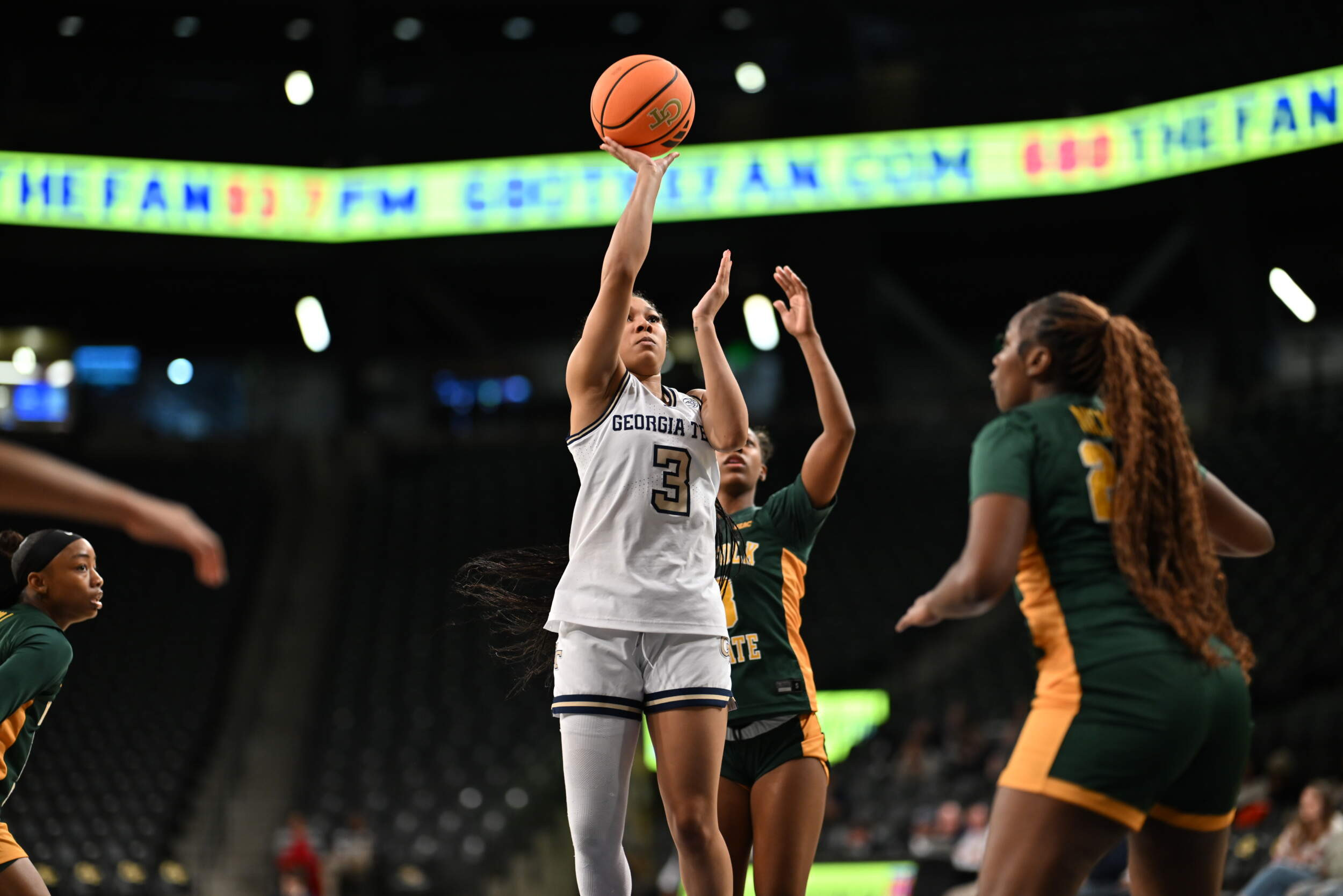 First-year head coach Karen Blair’s squad travels up north after a 72-57 win over Norfolk State Monday night. Tech posted a season-high 48 first-half points and four in double-figures, including 20-point games from Talayah Walker and Catherine Alben.