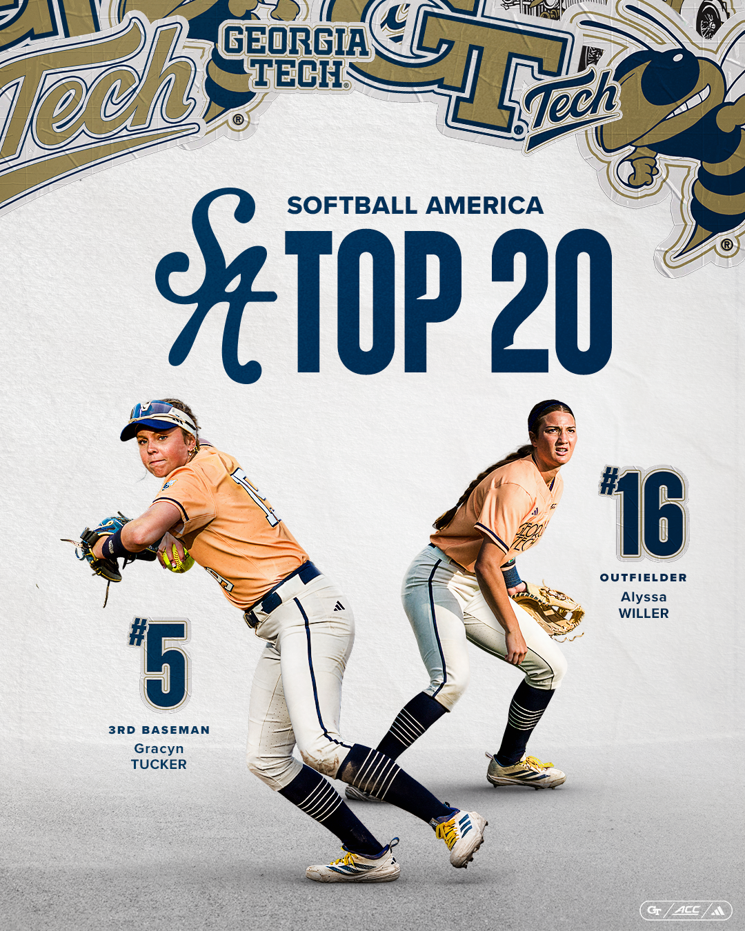 THE FLATS – Georgia Tech softball (29-26, 10-14 ACC) saw Gracyn Tucker and Alyssa Willer named in the May edition of Softball America’s Position Rankings, as was announced by the association this week. The third baseman worked her way into the top-five rankings while Willer sits 16th amongst all outfielders.
