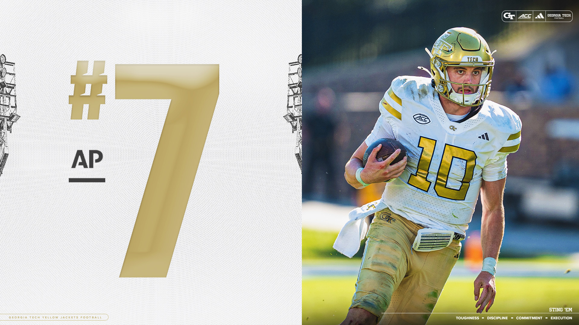 THE FLATS – Georgia Tech football achieved its highest national ranking in 11 years – and its highest in the regular-season in 16 years – on Sunday when it came in at No. 7 in the Associated Press (media) and US LMB coaches polls.