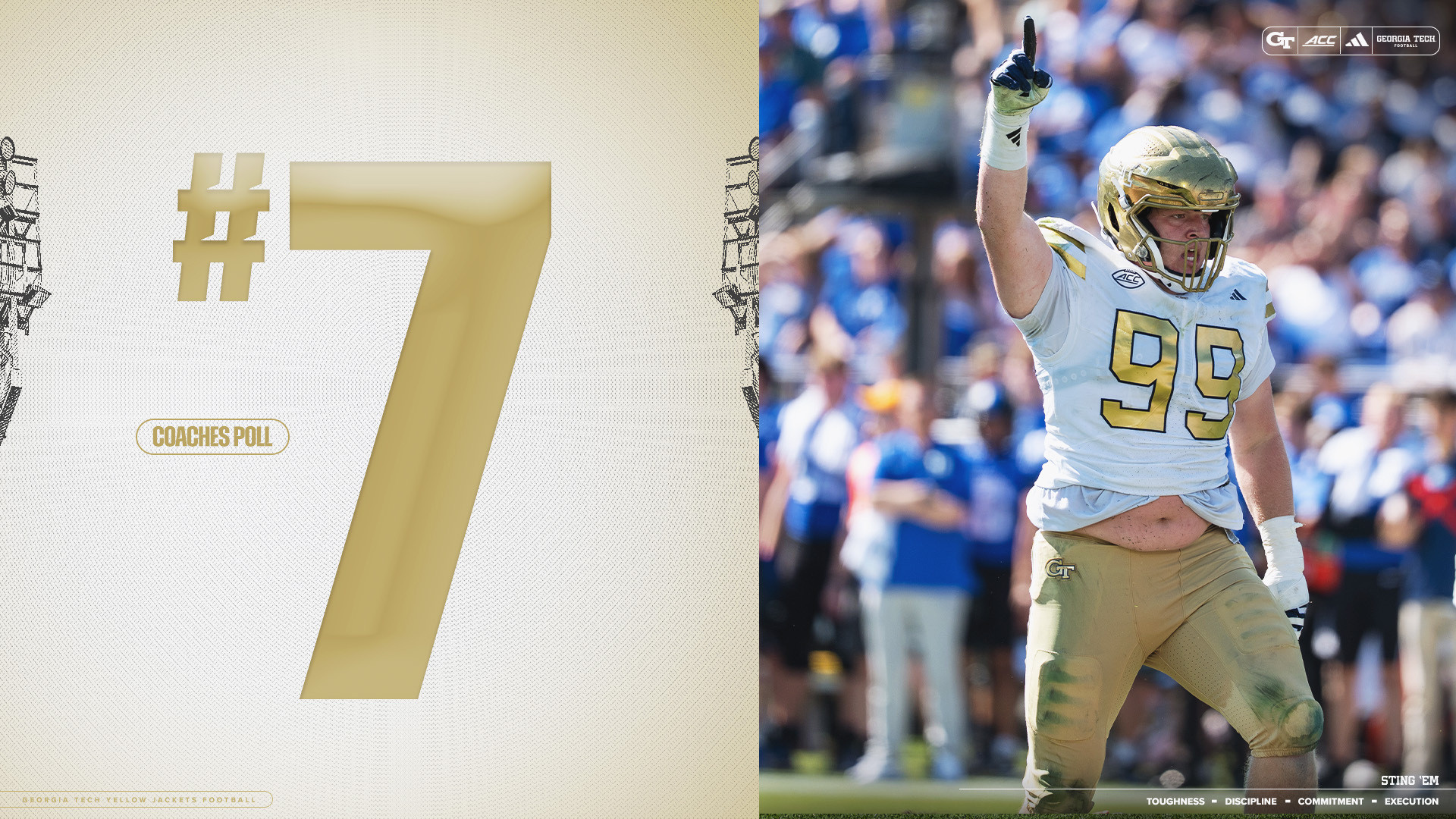 The Yellow Jackets’ No. 7 ranking is their highest since they were ranked seventh in the final coaches poll of the 2014 season, following the conclusion of an 11-3 season that was capped by a 49-34 Orange Bowl victory over Mississippi State.