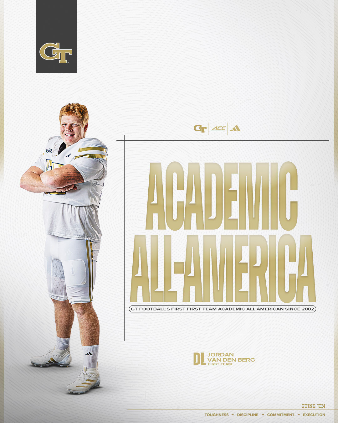 In addition to being Georgia Tech football’s first first-team Academic All-American since punter Dan Dyke received the recognition four-straight years from 1999-2002, van den Berg is only the 11th Yellow Jacket to ever earn first-team Academic All-America honors, which date back to 1952. He is the second Yellow Jacket in as many years to be named Academic All-America, following long snapper Henry Freer, who was a second-team honoree in 2024.