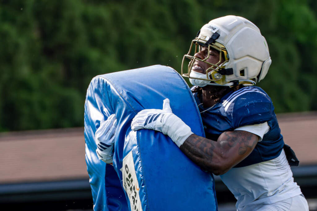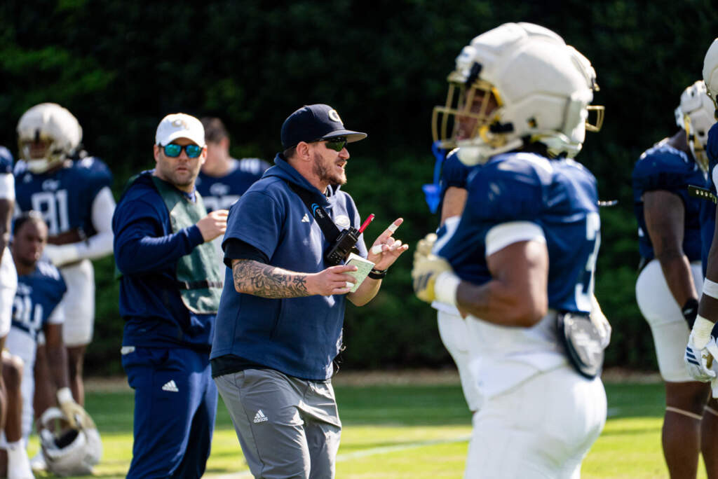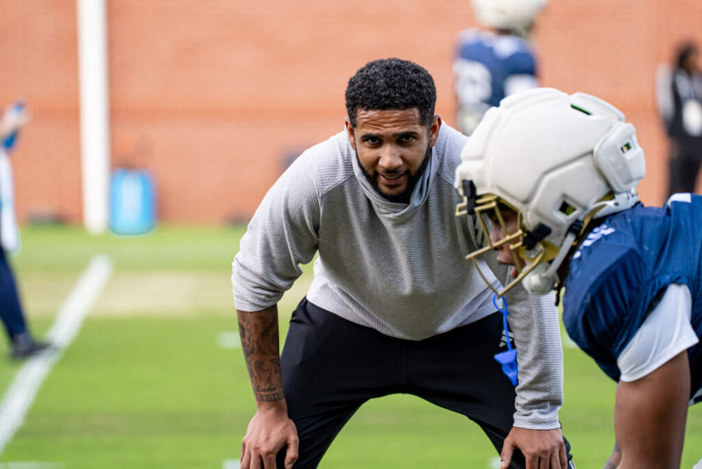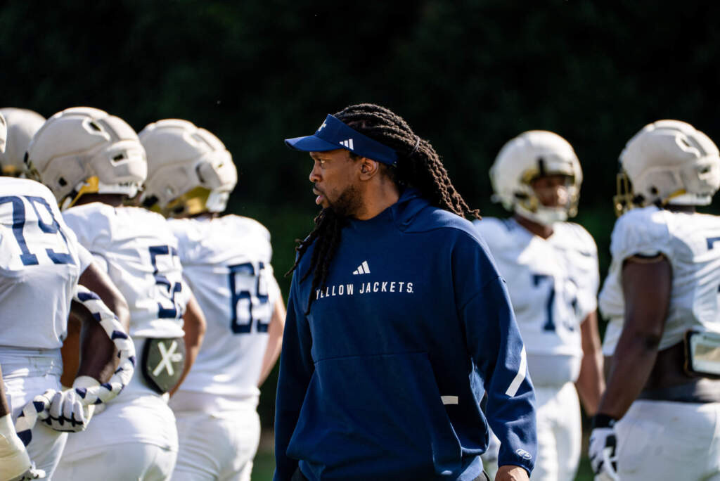 Wide receivers coach Jafar Williams meets with media after Yellow Jackets' sixth practice of the spring